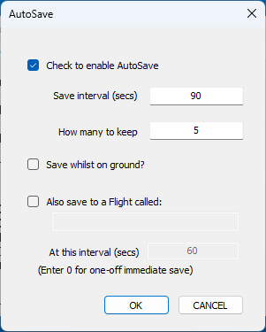 The auto-save feature of FSUIPC allows your flight to be saved at regular intervals, or when triggered/instructed by the user.