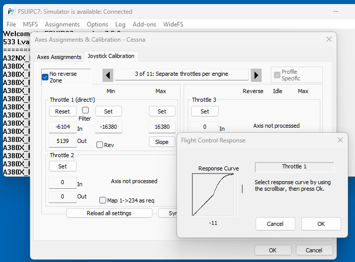 Calibration facilities are also provided, which can be used when an axis is assigned outside of FSUIPC7 (e.g. when assigned in MSFS) as well as when assigned in FSUIPC7.