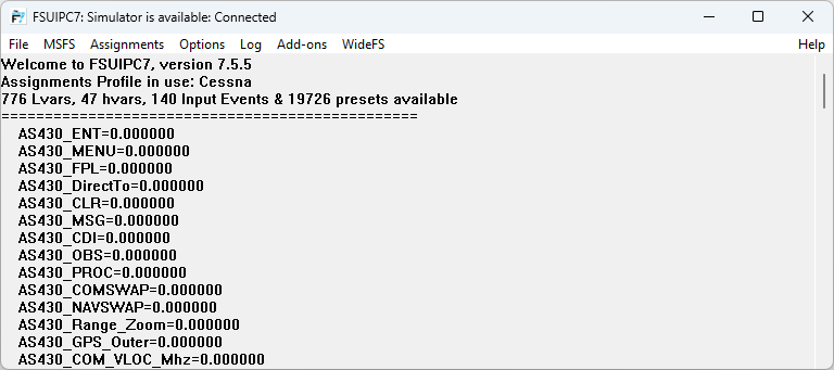 FSUIPC7 comes with a lua interpreter, which allow lua scripts or “plug-ins” to be ran. As well as the standard lua libraries, FSUIPC adds several more libraries that allow the lua scripts to communicate with FSUIPC and thus control MSFS.